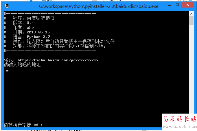 5.生成的exe文件,在baidu文件夾下的dist文件夾中,雙擊即可運行:
