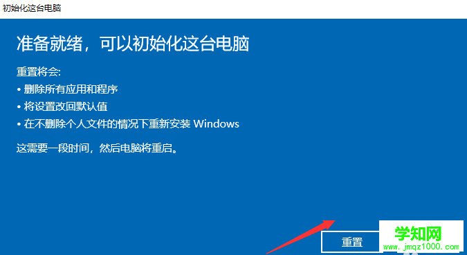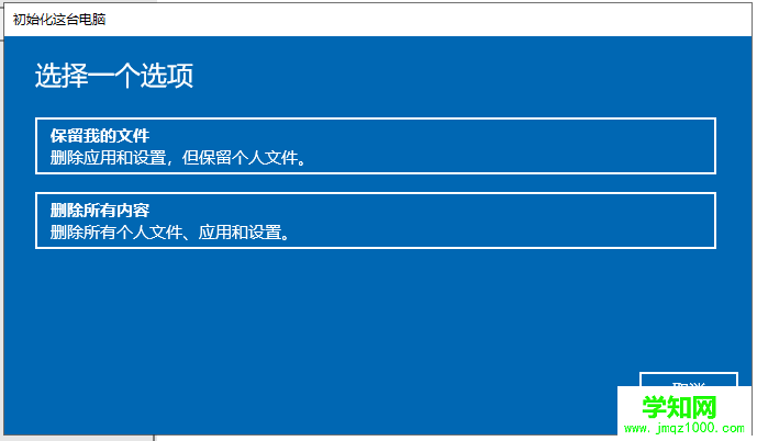 3、彈出初始化這臺電腦,如果電腦中有重要文件就選擇保留個人文件,第二個選項刪除所有內容也就是我們所說的恢復出廠設置,大家根據自己需要進行選擇