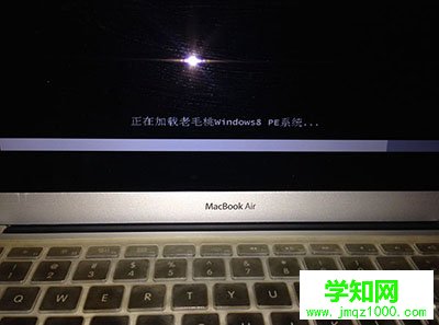 把制作好的U盤插入電腦,同樣,開機安裝option鍵,出來選項之后,選擇windows選項,此時電腦會進入讀取U盤里面的winpe系統,如下圖: