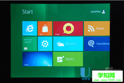完成一系列設(shè)置后,首先迎接我們的不是傳統(tǒng)的windows桌面,而是非常新穎的Metro界面。接下來(lái)我們會(huì)簡(jiǎn)單的做一些體驗(yàn)。