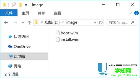 6、復制win7系統光盤鏡像 sources 文件夾中的 boot.wim 和 install.wim 到 d:/image(官方下載的win7 iso鏡像用winrar打開就能找到這2個文件,直接拷貝出來)