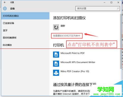 2、在彈出新窗口中,找到“添加打印機或掃描儀”。點擊后會出現“正在搜索打印機或掃描儀”,這個時候稍等一下,可以看到“我需要的打印機不在列表中”。