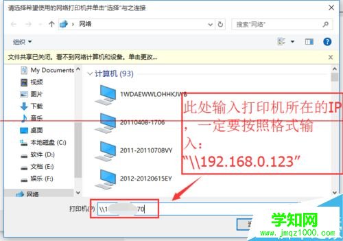 4、點擊后出現新窗口,這里比較特殊,不要直接在窗口點擊要找的遠程電腦(因為有可能連接失敗)。我們直接輸入遠程電腦的IP地址“//192.168.0.123”并點擊“選擇”。要記住斜杠的方向不要弄錯了。這個技巧很特殊,好多朋友都不知道。
