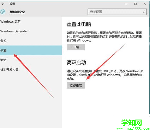 在彈出的“高級選項”界面,選擇“啟動設置”圖標,然后在彈出的啟動設置窗口中點擊右下角的“重啟”按鈕