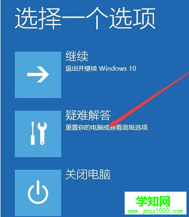 在彈出的“選擇一個選項”窗口,選擇“疑難解答”圖標