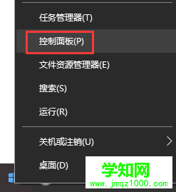 1、在桌面右下角的win圖標上單擊右鍵,選擇控制面板。