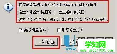 當(dāng)點擊 確定(Y) 按鈕后會彈出一個小窗口,我們只需繼續(xù)點擊該彈出窗口的 是(Y) 按鈕即可