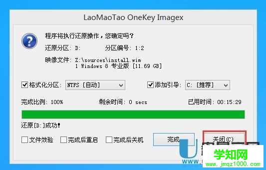 當(dāng)進(jìn)程完畢后點擊 關(guān)閉 ,即可