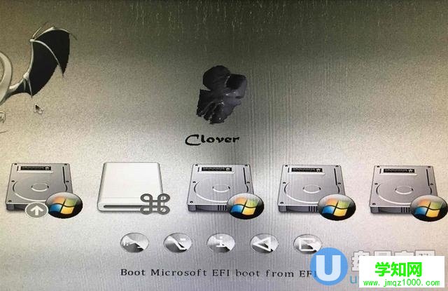 8、系統(tǒng)安裝在winpe下進(jìn)度完成以后,我們就可以把另一個(gè)做了clover的小容量U盤(pán)插到電腦上了,這時(shí)候重啟電腦拔出微pe的U盤(pán),只插做了clover的U盤(pán),bios里依然是從U盤(pán)啟動(dòng)電腦,然后就會(huì)進(jìn)入clover啟動(dòng)界面,如下圖