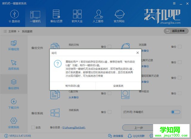 2、裝機(jī)吧提供多種功能,一鍵重裝系統(tǒng)需要選擇一鍵裝機(jī) 系統(tǒng)重裝功能。如果有不懂的地方可以掃描下方的二維碼咨詢?nèi)斯た头?/p>