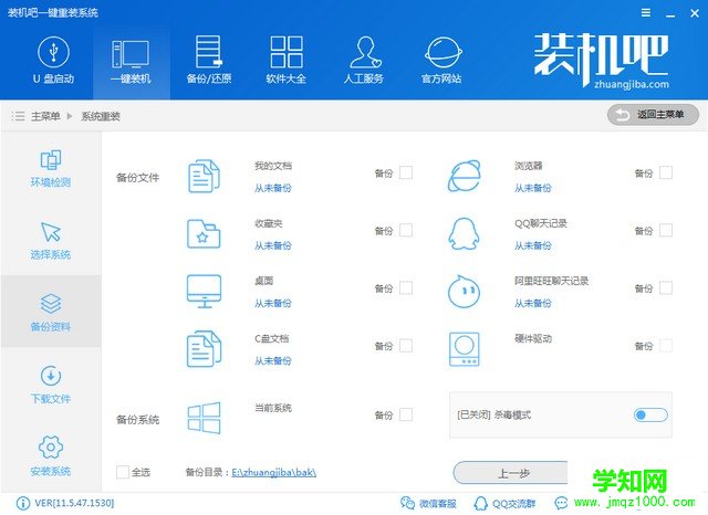 5、備份神州電腦重要資料,注意一下左下角的備份目錄,點擊下一步