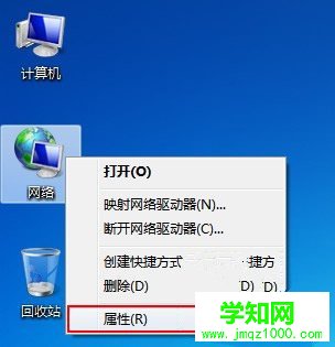 然后選中桌面上的“網絡”按鼠標右鍵選擇“屬性”。