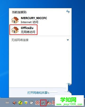 用戶在通知欄下點擊“顯示器”圖標可看到“本地連接”和創建的“OfficeZu”這兩個連接。