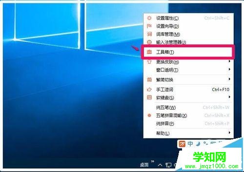 1、切換輸入法到中文(簡體,中國)搜狗拼音輸入法,在搜狗拼音輸入法圖標中點擊【搜狗工具箱】圖標;