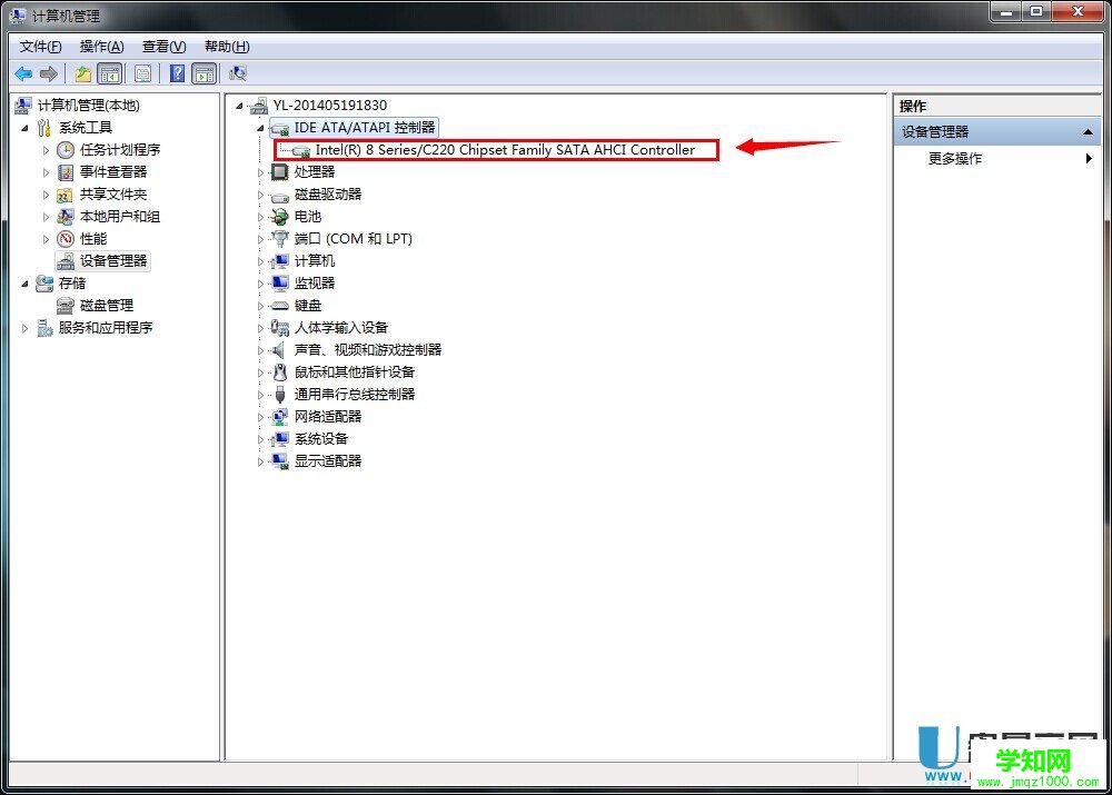 4.重新啟動電腦,使用快捷鍵進入BIOS模式。在BIOS里改成AHCI模式,進入系統后會發現新硬件,不用理會,直接安裝AHCI驅動(win7一般聯網會自動安裝,如沒有自動安裝,請到主板或筆記本官網下載主板或者單獨的AHCI驅動)安裝完成后如下圖所示