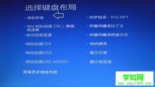 可能要重啟三次失敗之后,才可能會彈出Windows10的修復菜單,首先是選擇鍵盤布局→微軟拼音。