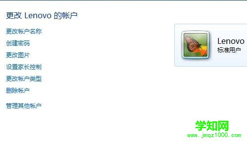 9,單擊“Lenovo標(biāo)準(zhǔn)用戶”可以打開(kāi)“Lenovo標(biāo)準(zhǔn)賬戶”的管理設(shè)置界面,在該界面中可以對(duì)其進(jìn)行一些設(shè)置,例如“創(chuàng)建密碼”等