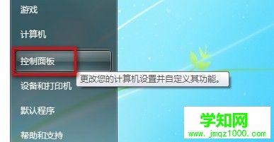 1,單擊左下角的“開(kāi)始”,找到右邊的“控制面板”。