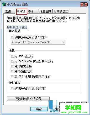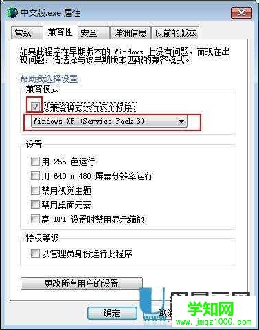 3.如圖依次勾選 以兼容模式運行這個程序 ,再根據你需要的兼容系統選擇,再點應用,然后再點確定,就可以運行啦。