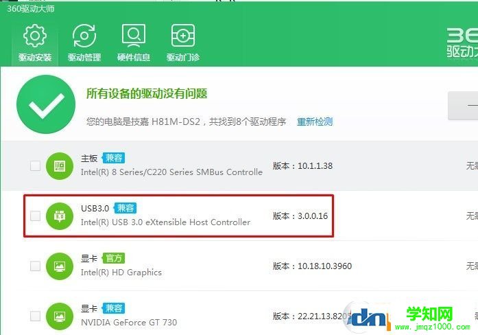 2、然后再開機,使用驅動精靈、驅動大師等軟件把USB3.0驅動安裝一下