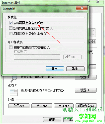 打開IE,點擊工具,點Internet選項,點右下角的輔助功能,然后勾選忽略網頁中指定的顏色。注:(這一操作有可能影響網頁顯示效果,意思就是別的顏色的字現在都是嫩綠色了,不過看起來很養眼,呵呵),然后點確定退出。現在你就會發現屏幕已經變成淡淡的綠色了。這個顏色會比白色柔和許多,剛開始可能你還有些不適應,但確實對我們的眼睛有好處,建議大家試一下。如不太習慣的話可以把勾去掉就是了。
