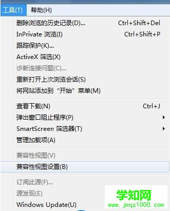 第三步、然后回到Win7旗艦版的IE瀏覽器,點擊菜單欄中的工具按鈕,點擊“兼容性視圖”,在打開的面板中輸入經常崩潰的網頁網址,點擊旁邊的“添加”按鈕。