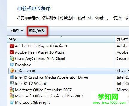4,選擇自己要卸載的程序,點(diǎn)擊“卸載/更改”。