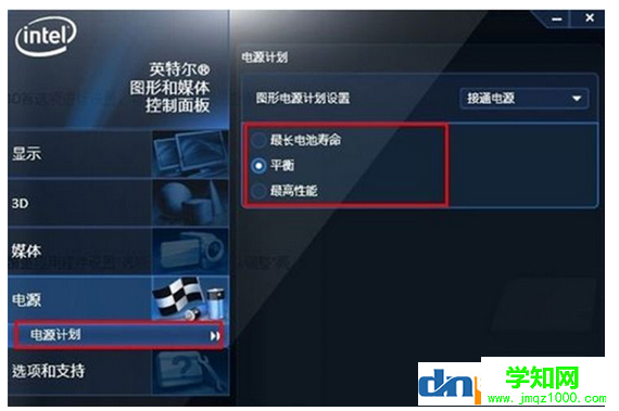 5、選擇“電源”選項,可以通過更改“電源計劃”選擇適合自己的最優方案。