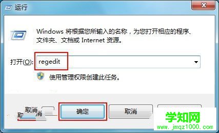 按鍵盤上的“Win+R”打開運行,輸入“regedit”按“確定”。
