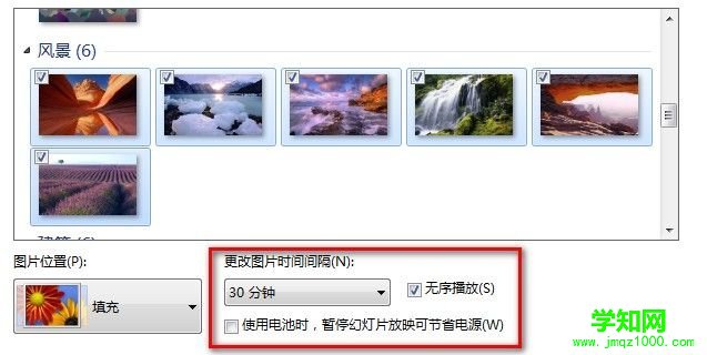 4,如一次勾選多個圖片,Windows桌面將定時切換壁紙,窗口下方可以設置切換時間。