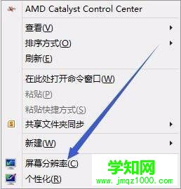 1、在屏幕任意空白位置點擊鼠標右鍵,選擇 屏幕分辨率 如圖所示: