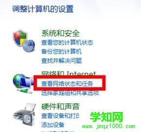 然后在控制面板中選擇“網絡和Internet”下的【查看網絡狀態(tài)和任務】:
