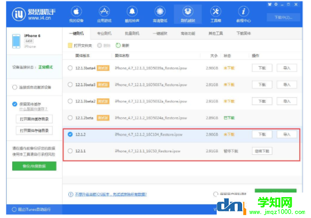 手機連腦電腦,打開PC愛思助手,選中可降版本,直接點擊“立即刷機”即可。