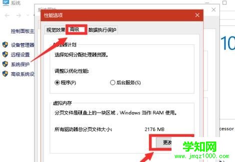 進(jìn)入性能選項(xiàng)窗口后點(diǎn)擊 《高級(jí)——更改》。