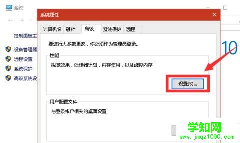 進(jìn)入系統(tǒng)屬性窗口后點(diǎn)擊性能框中的《設(shè)置》。