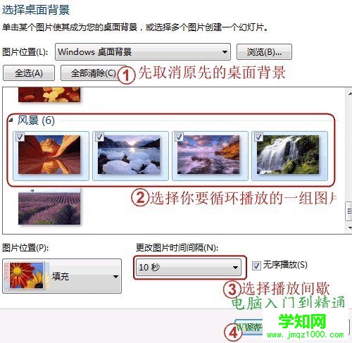 圖片時間間隔可以按照需要設置。最小的是10秒,你可以設成一分鐘變一下,這樣像幻燈效果。也有不少網友只是希望每天換一張圖片,那可以選中幾十張圖片每天自動換一張。