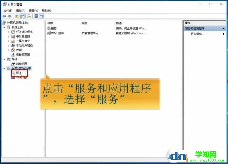2、點擊“服務(wù)和應(yīng)用程序”,選擇“服務(wù)”;