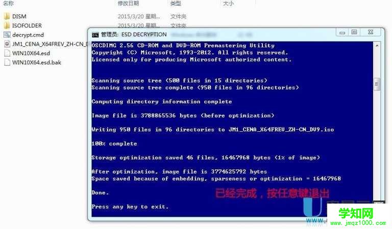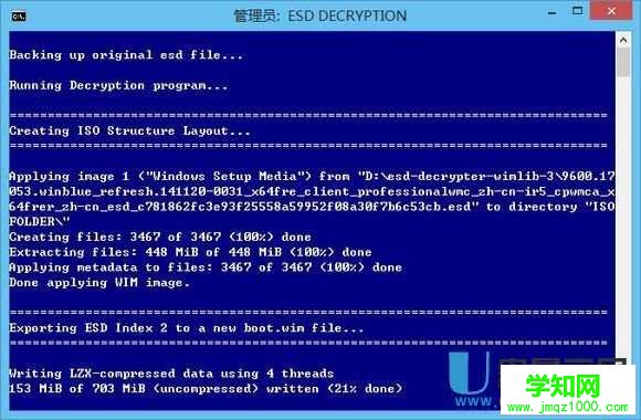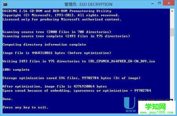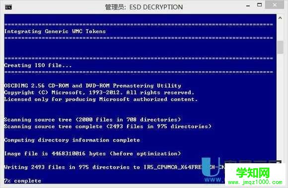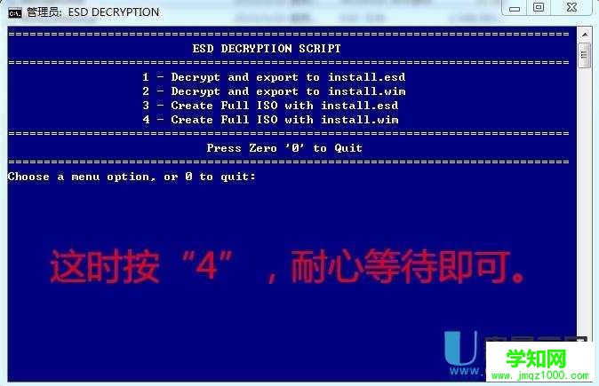 4、(建議關閉殺毒軟件)以管理員身份運行decrypt.cmd,彈出的對話框中輸入 4 ,等待將ESD鏡像轉化為ISO鏡像,即可在decrypt.cmd同目錄下得到ISO鏡像;