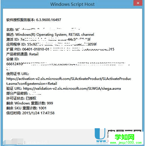 例如,我下載的是零售版Win8.1專業版系統,可依次輸入如下命令:(若標準版則[EditionID]為Core )