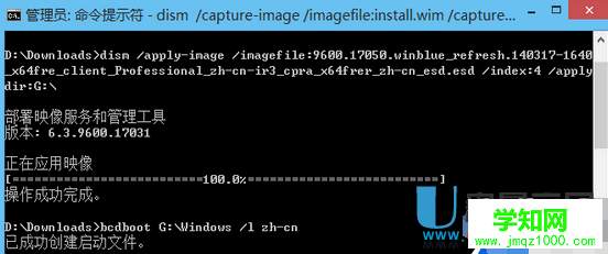 dism /apply-image /imagefile:9600.17050.winblue_refresh.140317-1640_ x64fre_client_Professional_zh-cn-ir3_cpra_x64frer_zh-cn_esd.esd /index:4 /applydir:G: