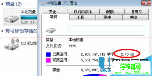 我們看看安裝完成后C盤已使用2.7GB的空間,而ESD文件只有316M,可見這個壓縮率還是很高的.如果是GHO文件最少也得要700M-800M吧或者更多。