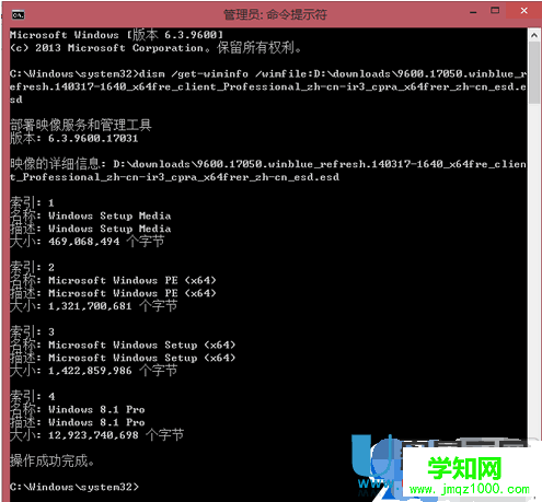 dism /get-wiminfo /wimfile:D:downloads9600.17050.winblue_refresh.140317-1640 _x64fre_client_Professional_zh-cn-ir3_cpra_x64frer_zh-cn_esd.esd