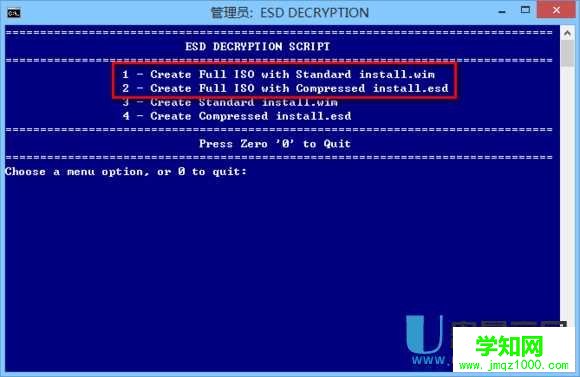 運行 decrypt_CHN.cmd ,選擇選項1,即可將加密的ESD文件轉換成一個沒有加密的。