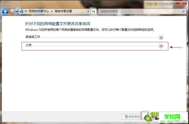 點(diǎn)擊圖中標(biāo)出的位置“更改高級(jí)共享設(shè)置”出現(xiàn)下圖