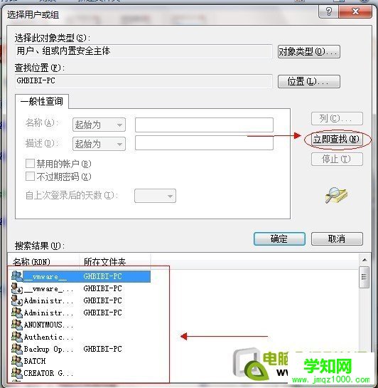 點(diǎn)擊“立即查找” 下面的位置就會(huì)列出用戶列表 找到everyone 用戶 雙擊它