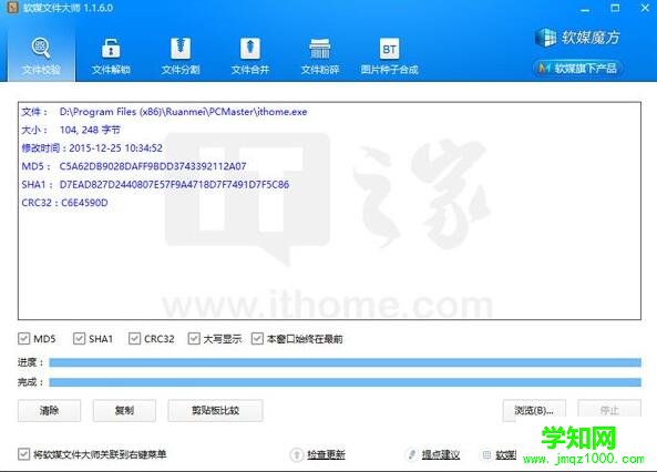 如果想快速校驗多個值,可以使用軟媒魔方(點擊下載)的文件大師,只要把文件拖入程序窗口即可。