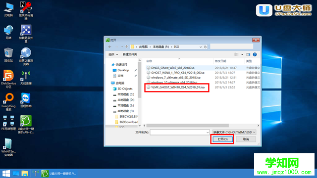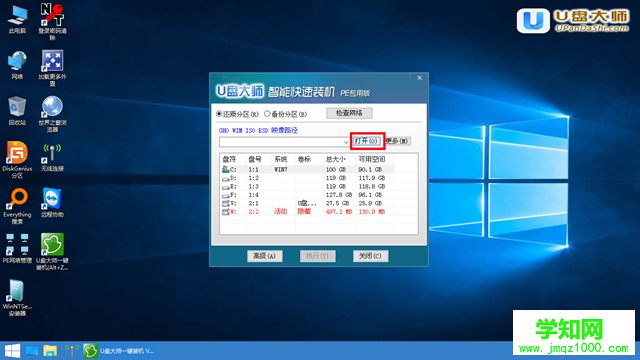 在彈出的映像大師窗口,通過 打開 按鈕選擇要安裝的 ISO 鏡像文件(U盤裝機大師可完美支持ISO,GHO,WIM三種鏡像文件)。