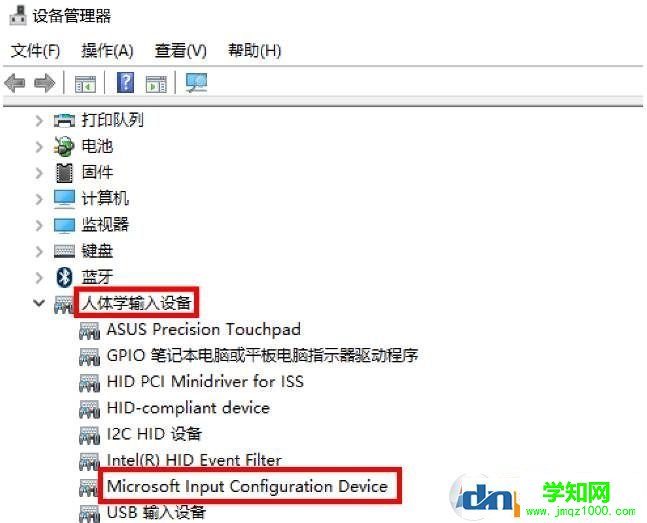 2、找到位于人體學輸入設備下的“Microsoft Input Configuration Device”。