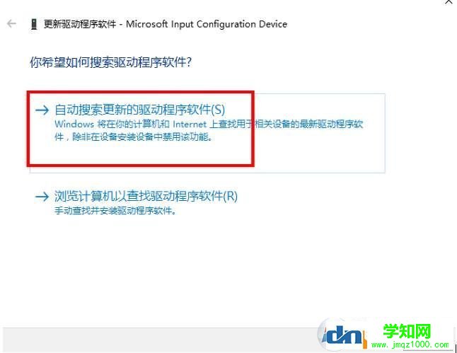 5、選擇 “自動搜索更新的驅動程序軟件”。