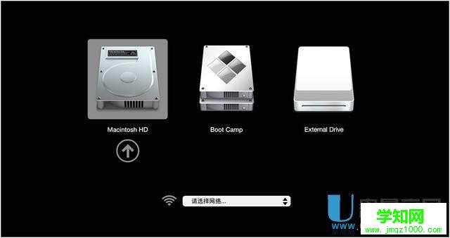 12、把做好系統的移動硬盤接到蘋果電腦的usb接口上,按下蘋果電腦開機鍵后在屏幕亮起之前按住鍵盤上的 Option 鍵。 (拼手速了,這里和 Boot Camp 切換操作系統步驟一樣)